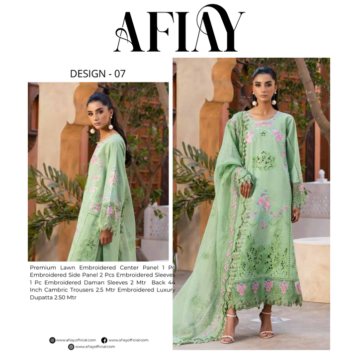 Drape yourself in the sophisticated charm of زمرد (Zamrud) – a stunning mint green ensemble adorned with delicate floral embroidery and intricate cutwork detailing. This ethereal outfit is designed for those who appreciate grace and elegance, making it a perfect choice for festive and formal occasions.