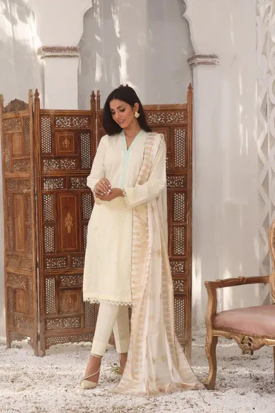 3 Piece Cotton Embroidered (Stitched) - Sparkling Water