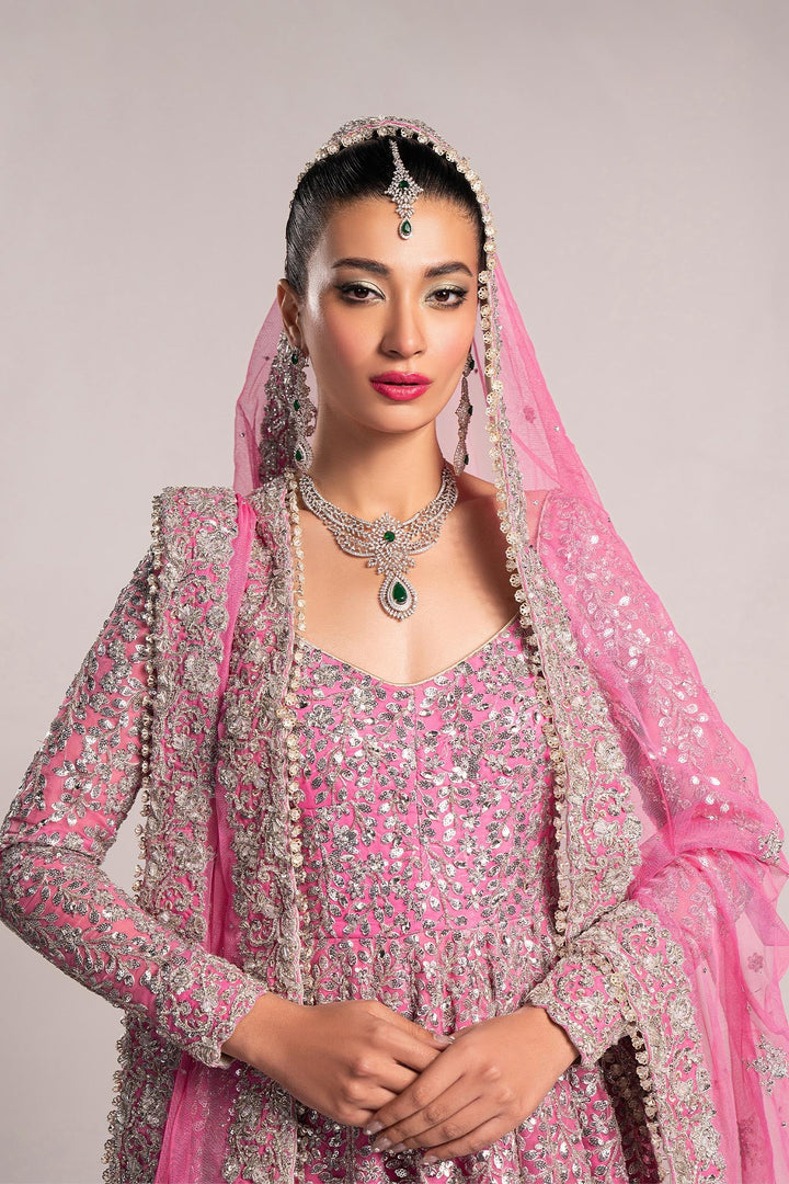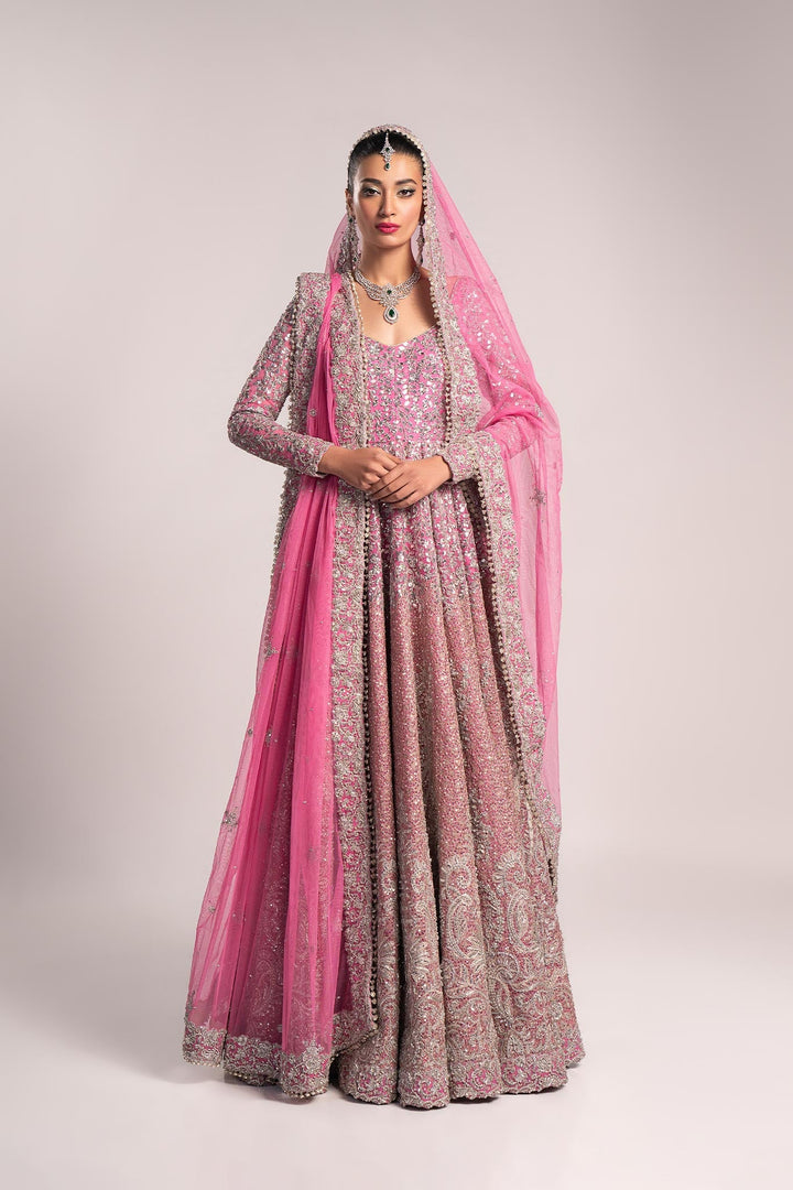 Radiate an aura of ethereal beauty on your wedding day with this enchanting pink bridal lehenga choli set. The net fabric base shimmers with a captivating combination of resham embroidery and delicate sequins. This enchanting foundation is further elevated by intricate zardozi work and sparkling crystals, creating a mesmerizing interplay of light and texture. The lehenga and dupatta flawlessly complement the choli, echoing the same exquisite embroidery and zardozi work.