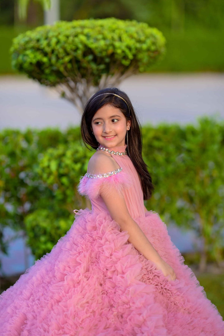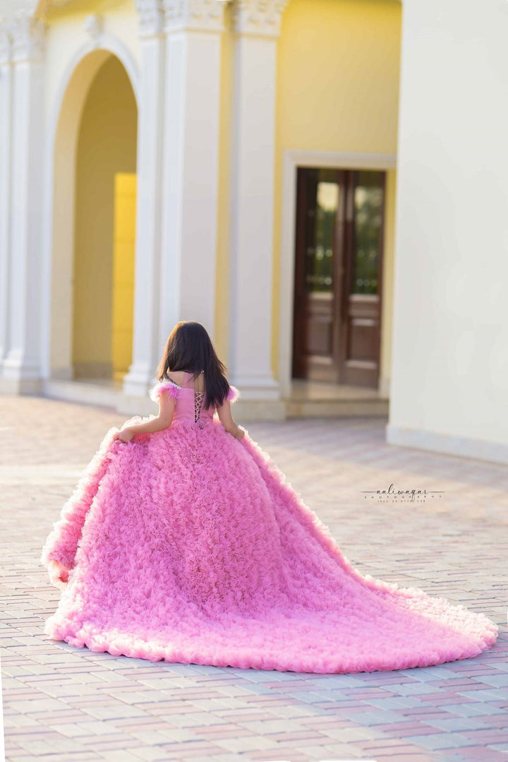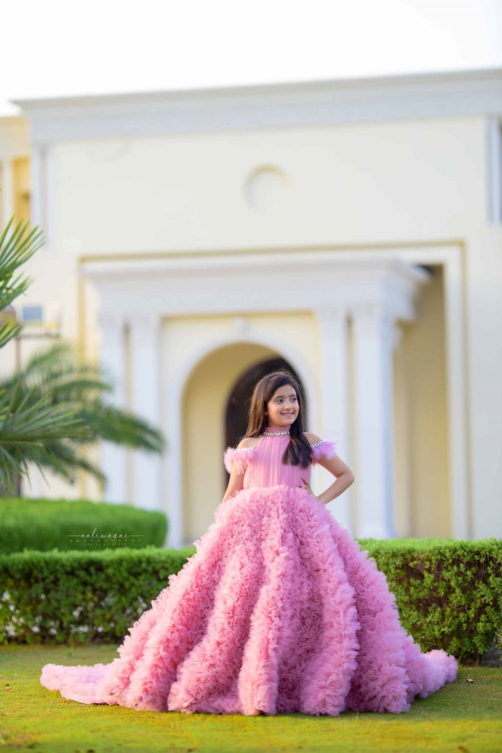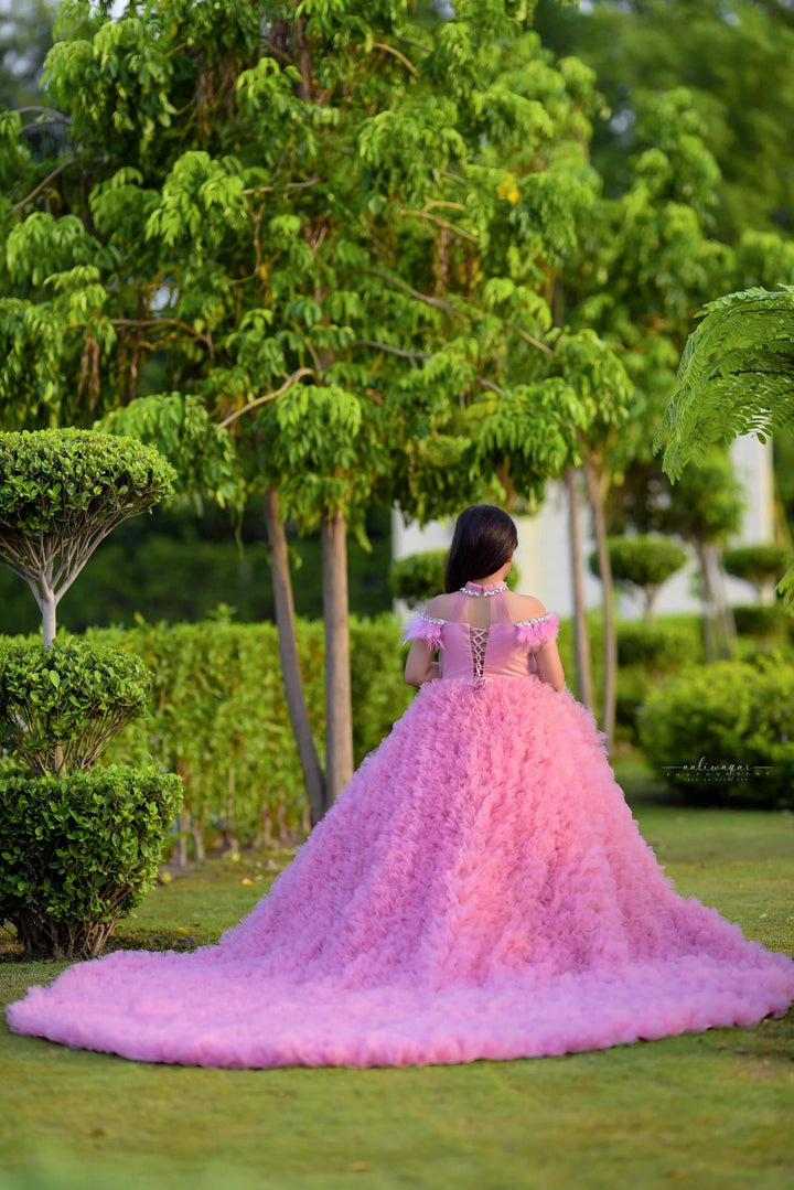 "Dive into the charm of the BELLEROSE maxi from our Luxury collection. Crafted in a delightful mix of shocking and baby pink, this dress combines the richness of silk with the allure of net, making it a perfect pick for the modern-day princess."