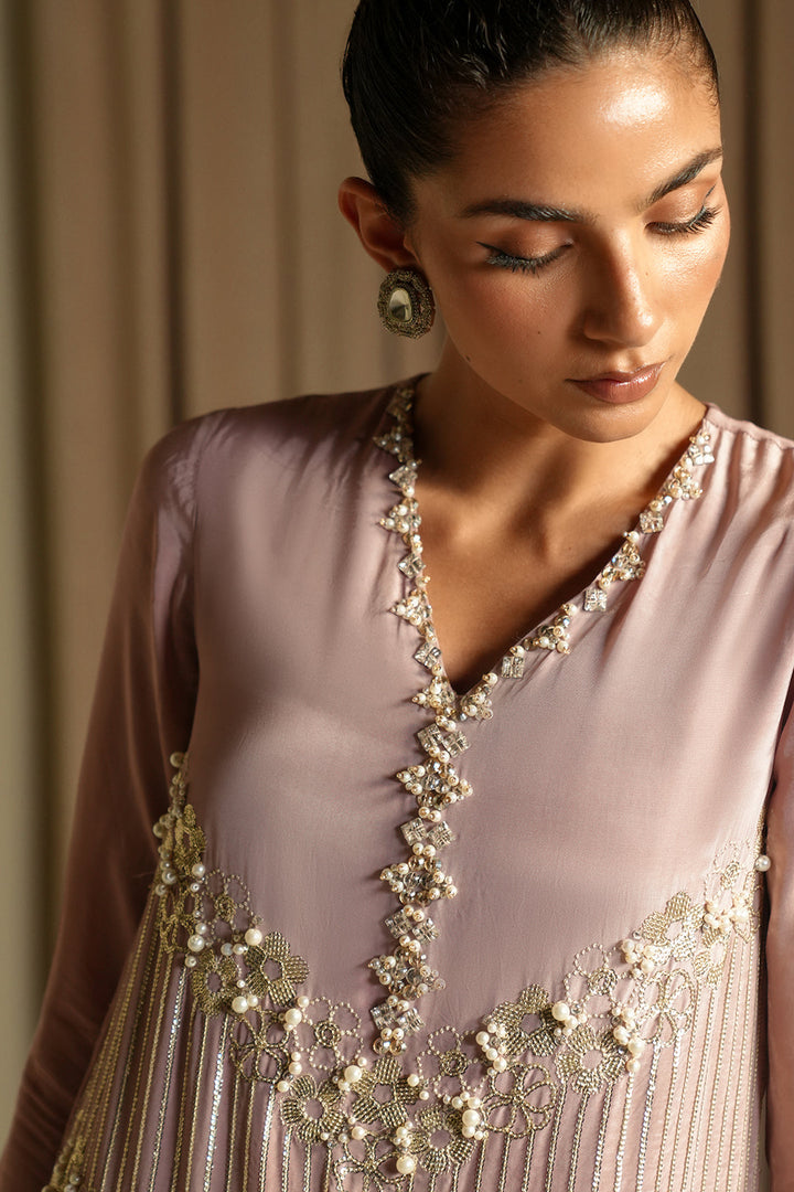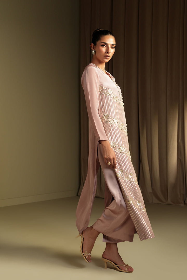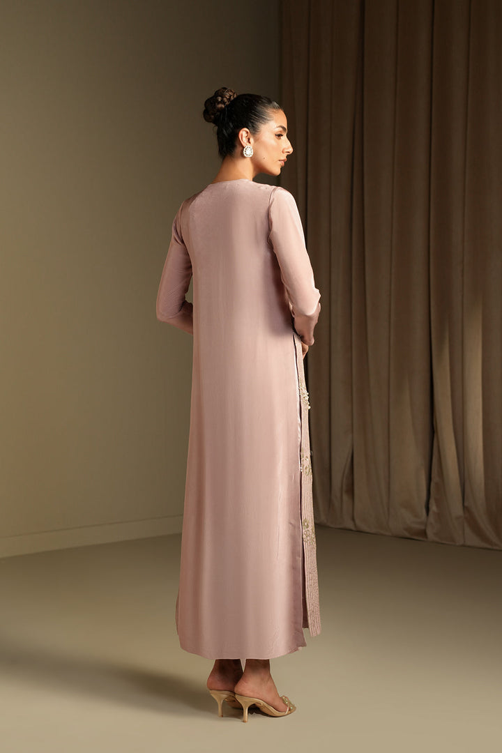 This stright cut shirt in a dusty pink silk fabric.
