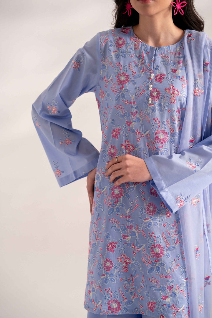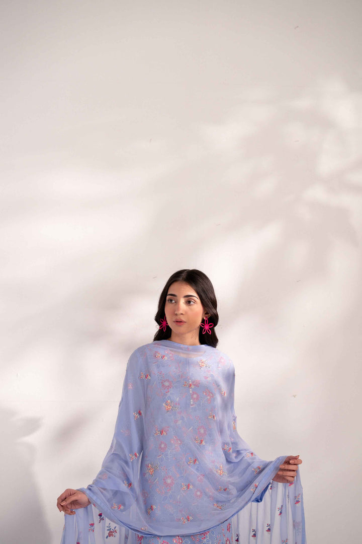 -Embroidered Pure Bamber Crinkle Dupatta