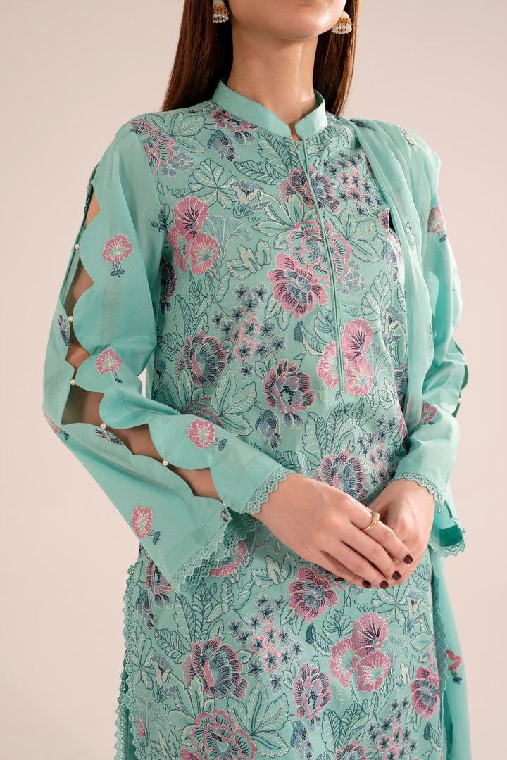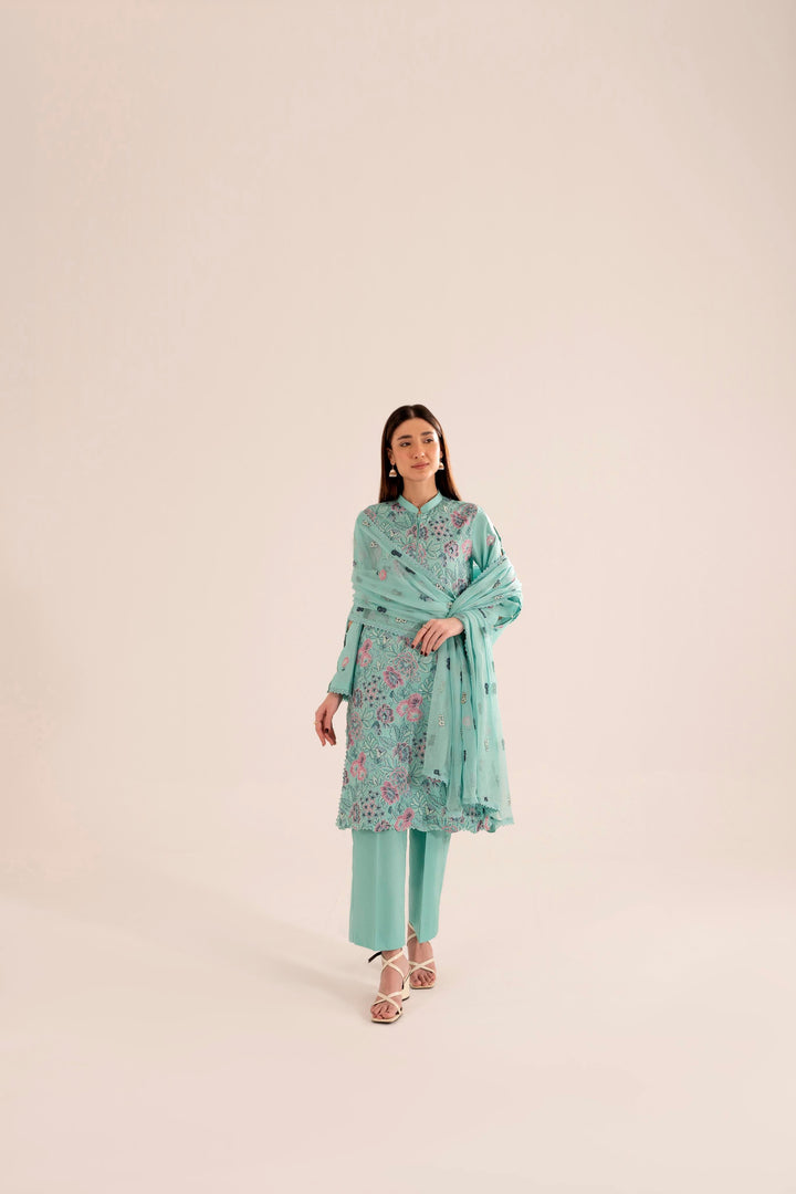 -Embroidered Pure Bamber Crinkle Dupatta