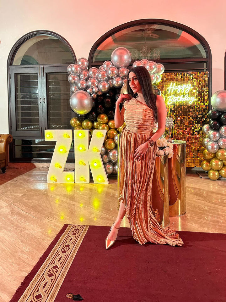 Dry clean recommended. Do not dry clothes in direct sunlight. Iron the clothes at a moderate temperature. Store the outfit in the garment bag provided.