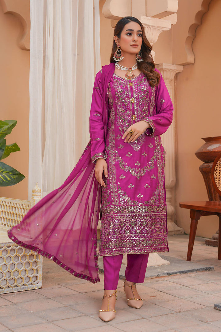 - 3 Piece heavily seqiun embroidered viscose Suit