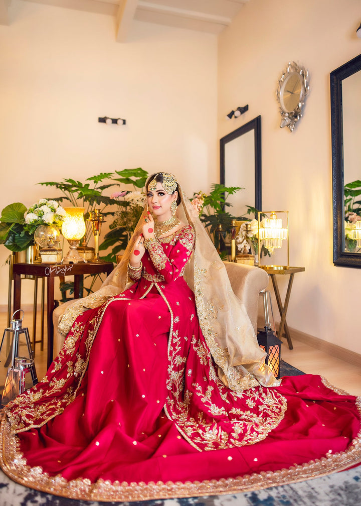 This classic red and gold look is for all those who look forward to worthy investments in couture.