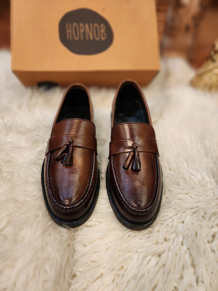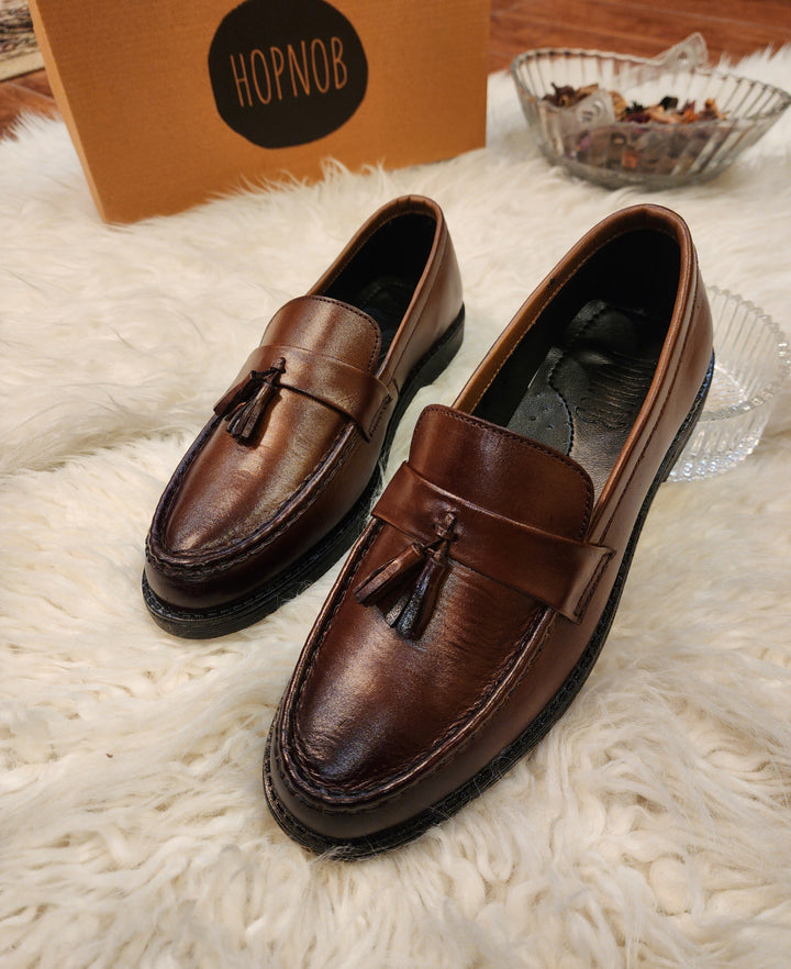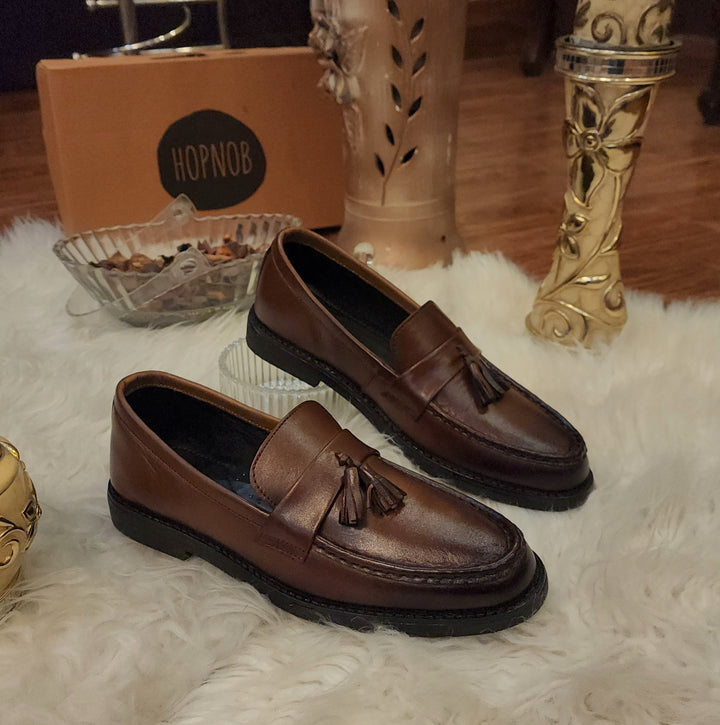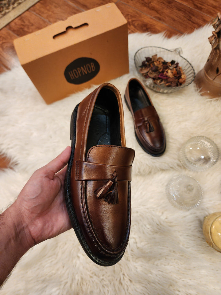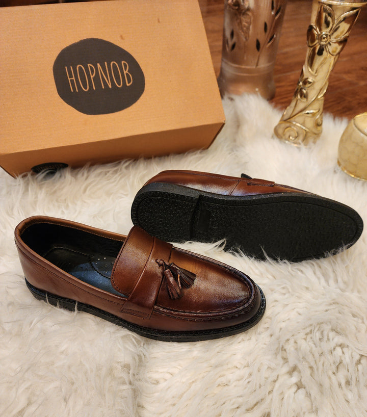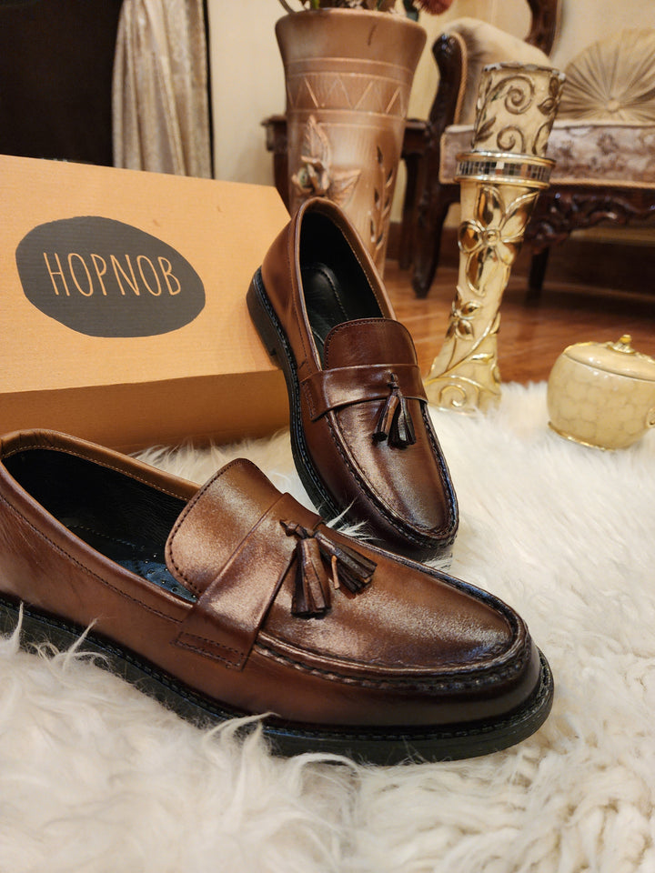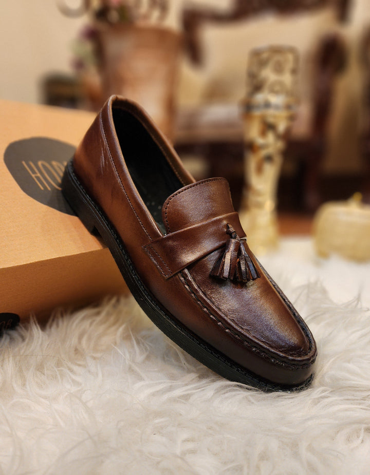 Step up your style game with our Shaded Tassel Loafers featuring a luxurious Patina finish. Expertly crafted from premium leather, these loafers showcase a unique, hand-finished patina that adds depth and elegance to any outfit. The shaded effect creates a sophisticated gradient, making each pair distinct. Perfect for formal events or elevating smart-casual looks, these loafers offer a blend of timeless style and modern craftsmanship. With a cushioned insole and a sleek silhouette, they ensure all-day comfort without compromising on style. Shop now for a refined look with fast delivery across Pakistan!