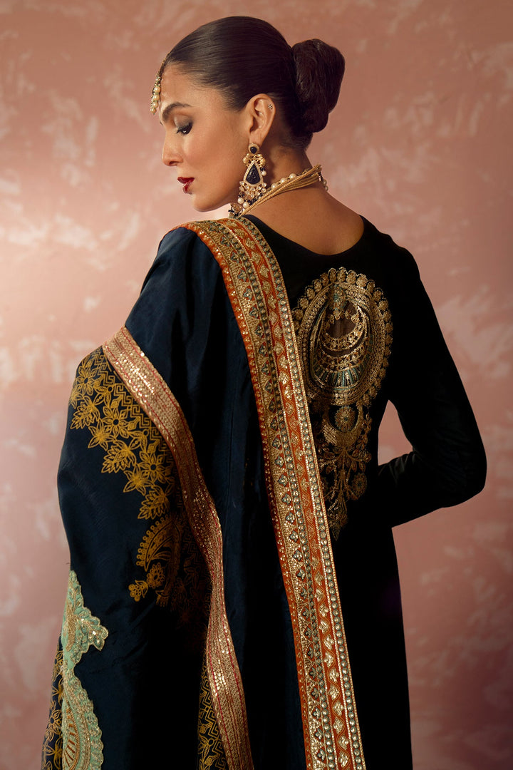 Resham embroidered and sequins embellished Rawsilk shalwar border