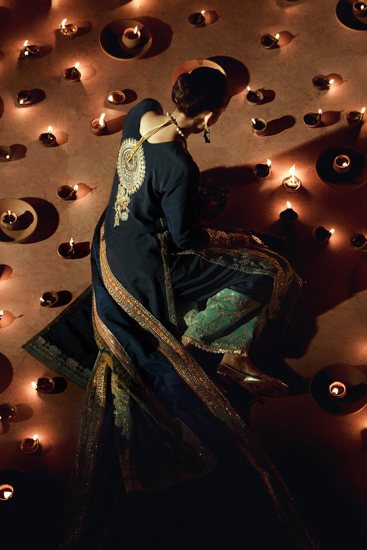 Resham embroidered and sequins embellished Rawsilk sleeves