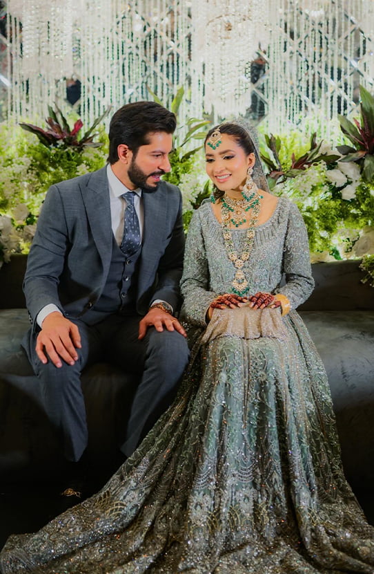 This ice-blue bridal masterpiece is a celestial vision, where every stitch tells a tale of elegance. Embellished to perfection, this creation is a poetic celebration of love and craftsmanship, leaving an indelible mark on the canvas of bridal couture.