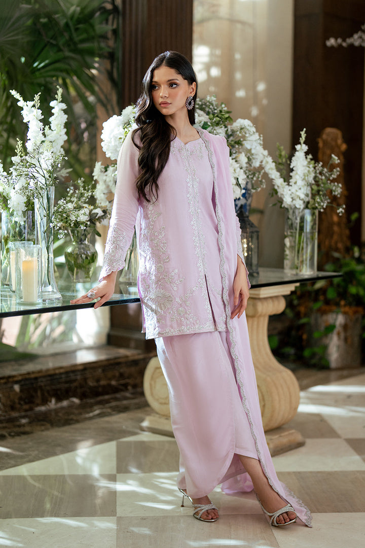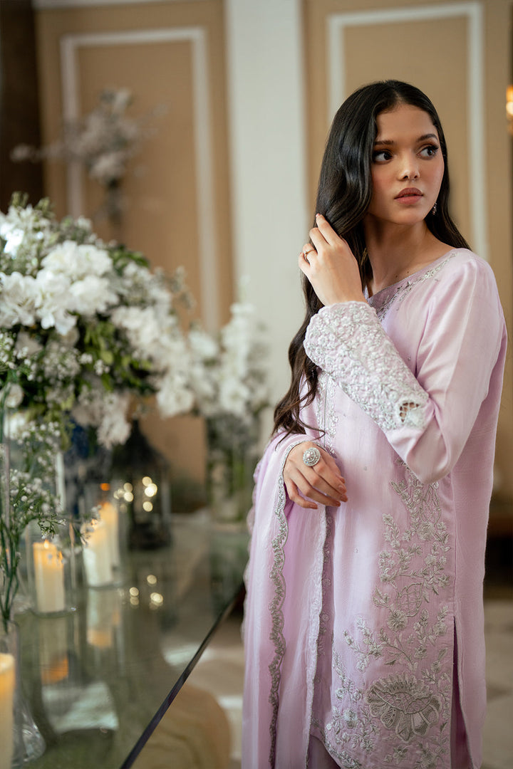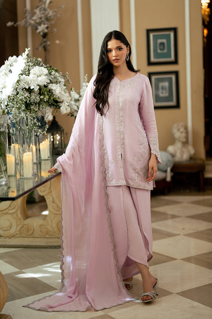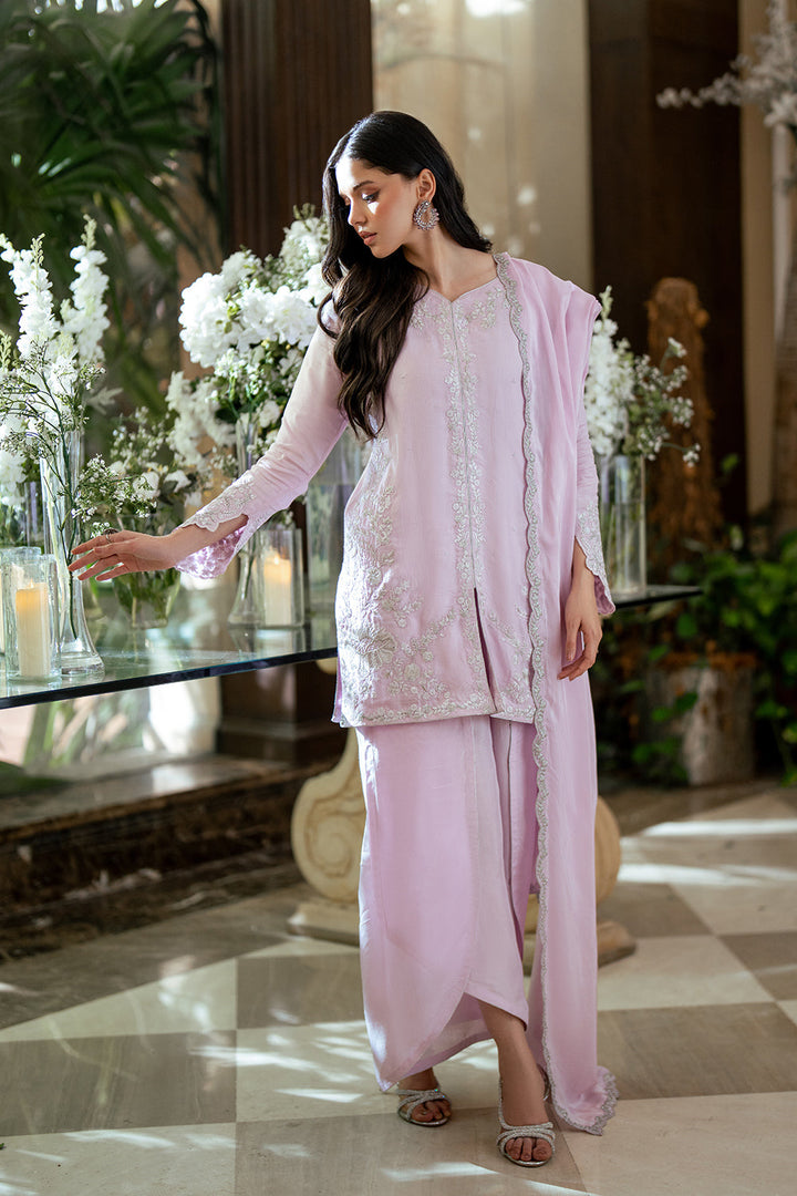 Grace meets modernity in Lavender Myst, crafted from luxurious raw silk in a dreamy lilac hue. Paired with wrap-around pants, this ensemble blends effortless elegance with a contemporary twist.