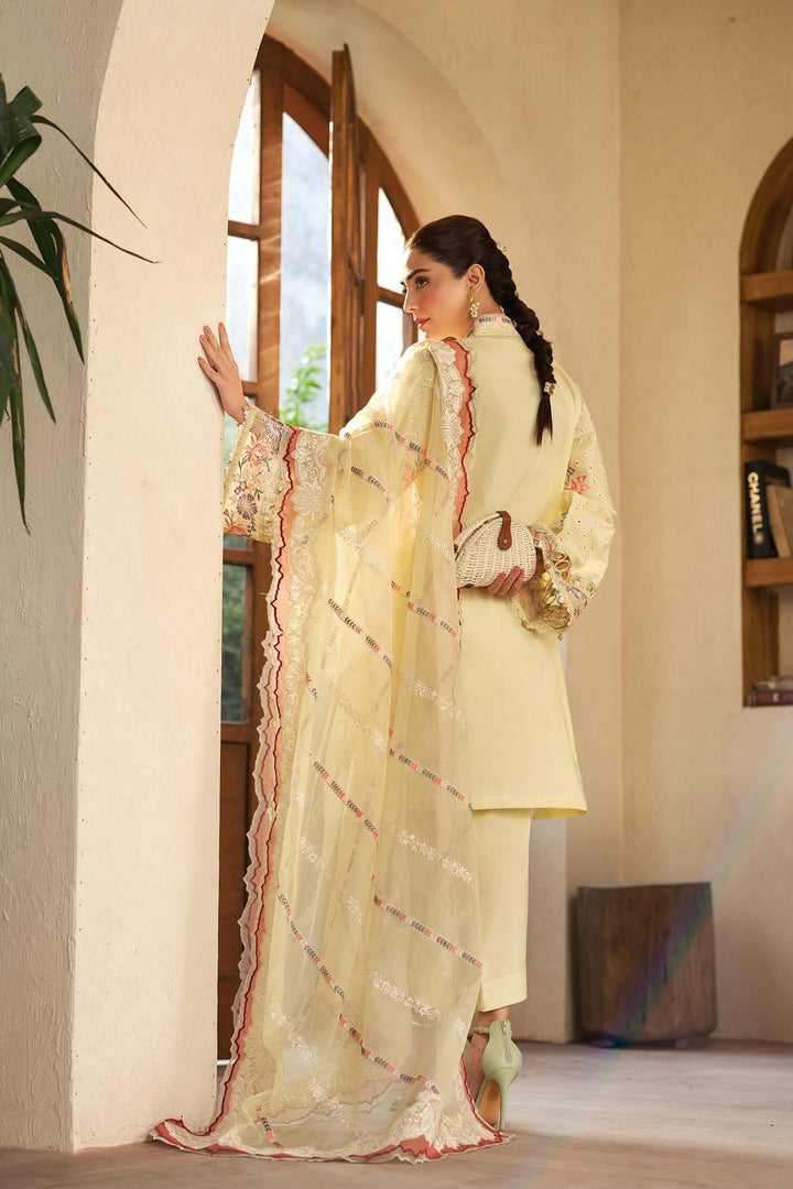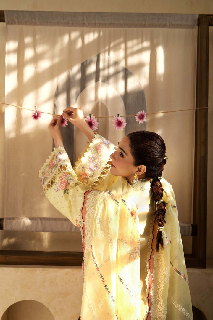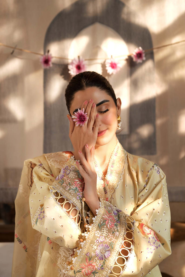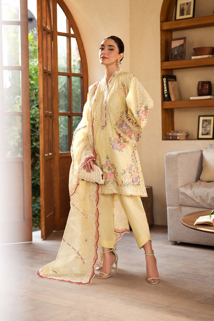 - Embroidered front side panels (left & right) on lawn fabric