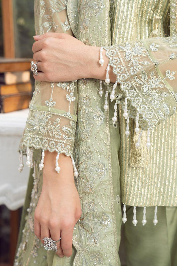 - Adda-Worked, Embroidered & sequined organza border for front (1yard)