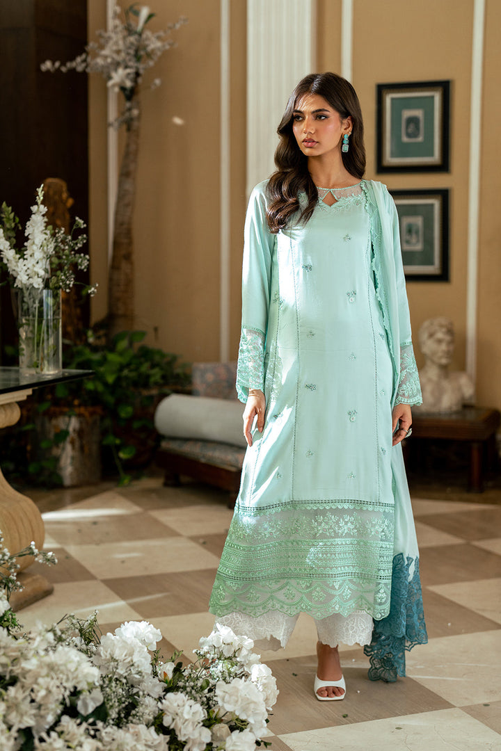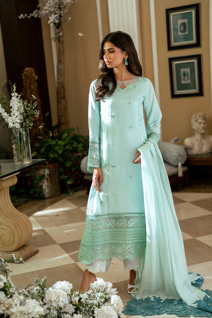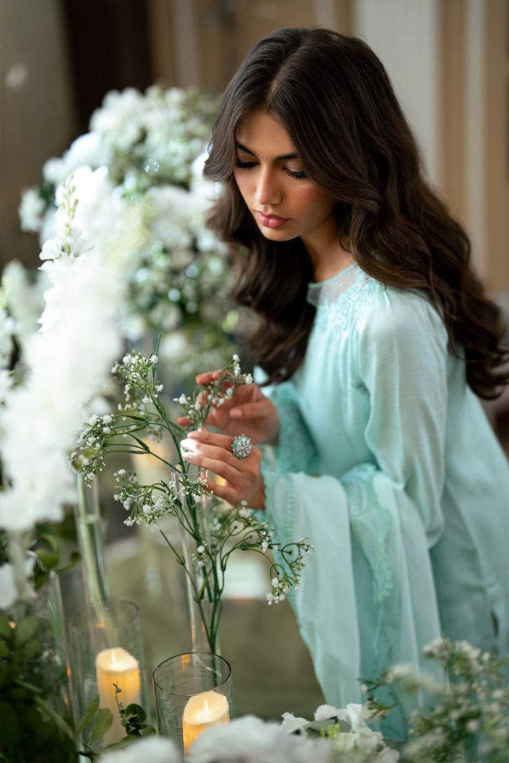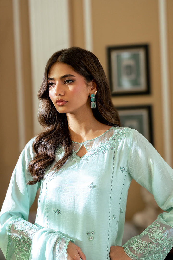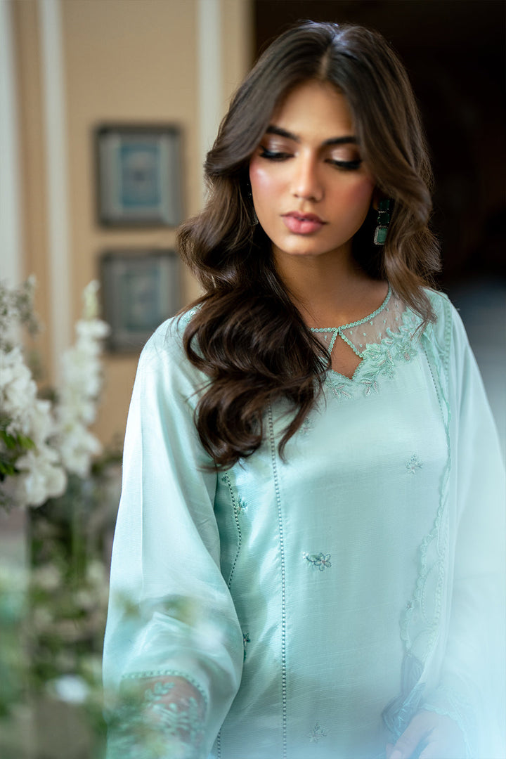 Embrace serenity with Mist Moss, crafted from luxurious raw silk in a soft, refreshing light green hue. Paired with a flowing flapper shalwar, this ensemble embodies effortless grace with a modern edge.