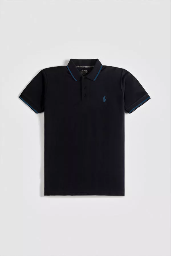 RL Cotton Tipping Polo Shirt – Black