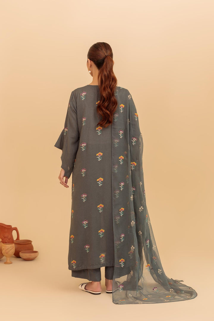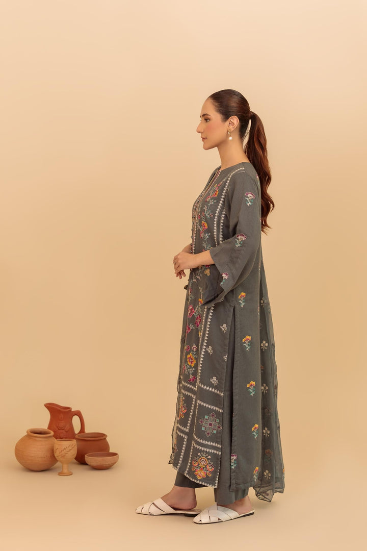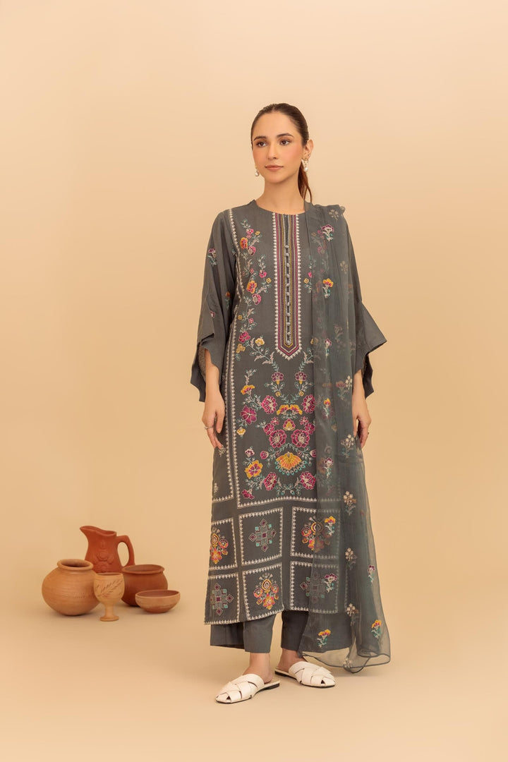 -Embroidered Bamber Crinkle Dupatta