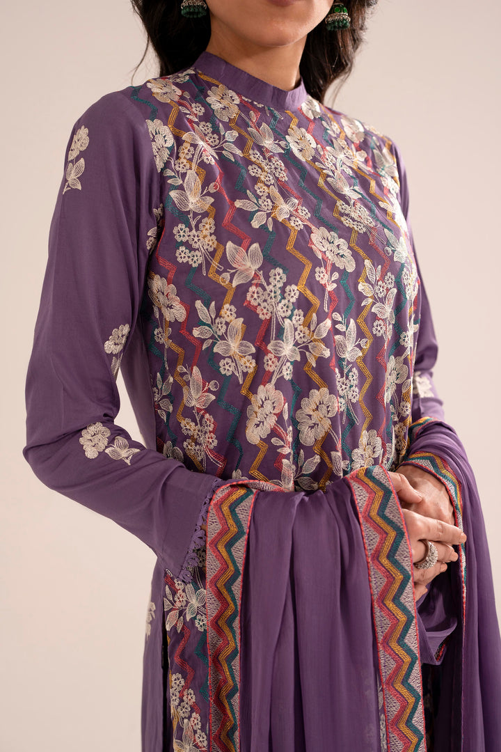 -Embroidered Pure Bamber Crinkle Dupatta