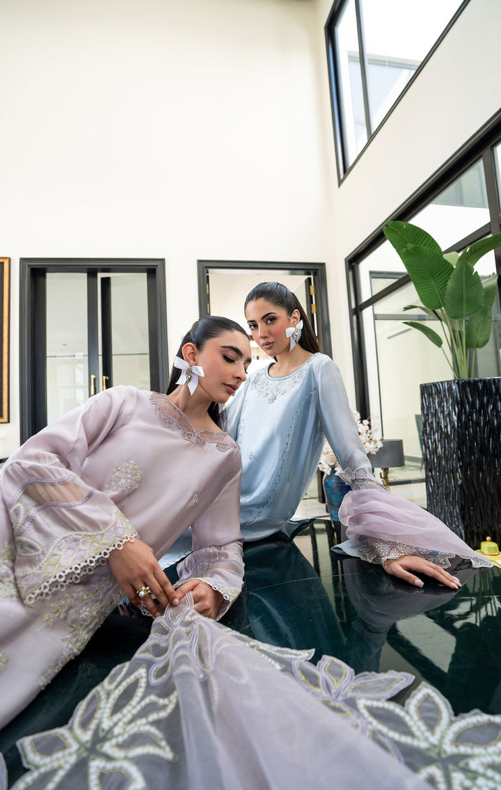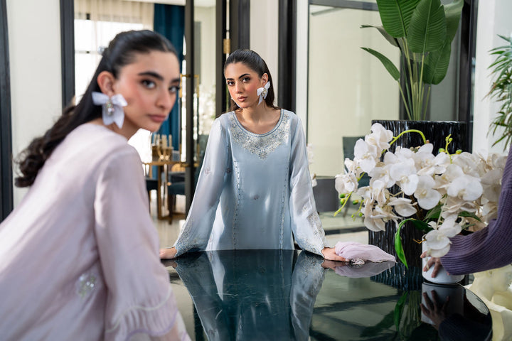 A three-piece statement of grace and luxury, designed for the modern muse. The shirt is adorned with delicate embroidery, hand embellishments, and embroidered laces, creating a look that is both refined and timeless. Paired with embroidered straight pants and a beautifully detailed dupatta, this ensemble exudes effortless sophistication.