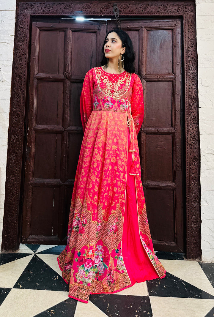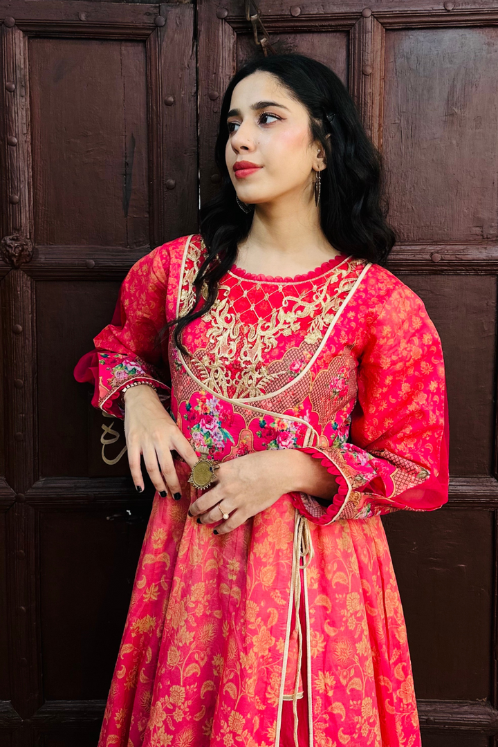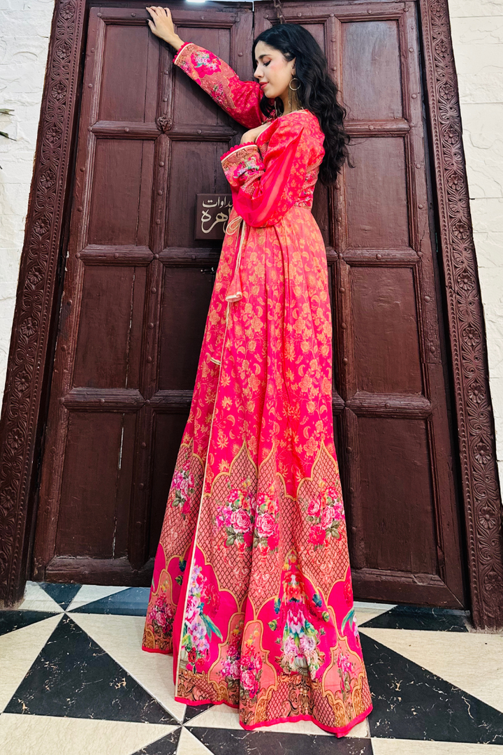 Our exquisite lawn printed paneled frock is a masterpiece of elegance and style. Featuring a side slit open in Kali style with a long flared silhouette, this frock is perfect for making a statement. The intricate embroidery on the neckline and sleeves adds a touch of sophistication, while the stylish design showcases exceptional craftsmanship. Paired with a beautifully printed dupatta, this ensemble is ideal for formal occasions.