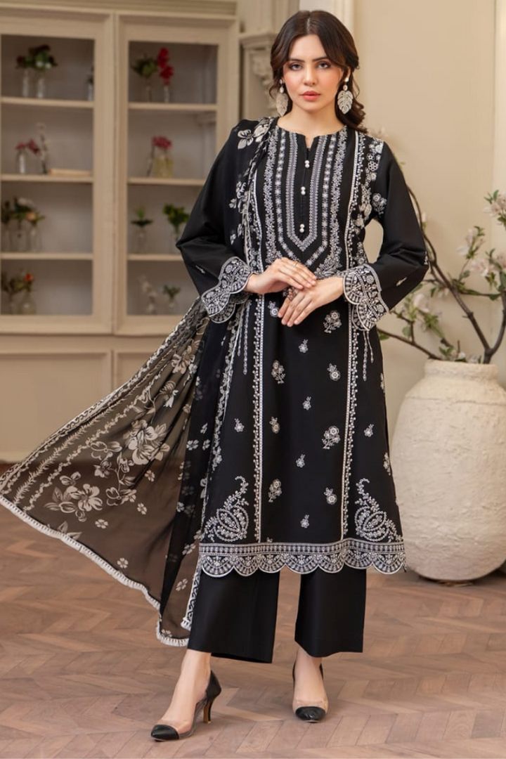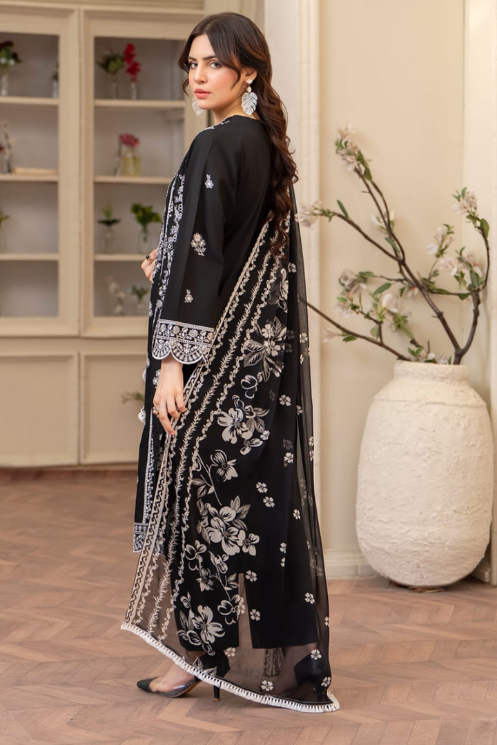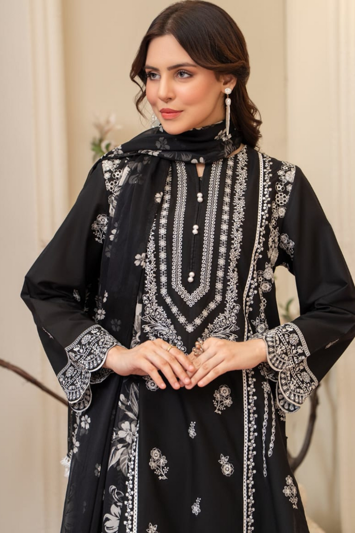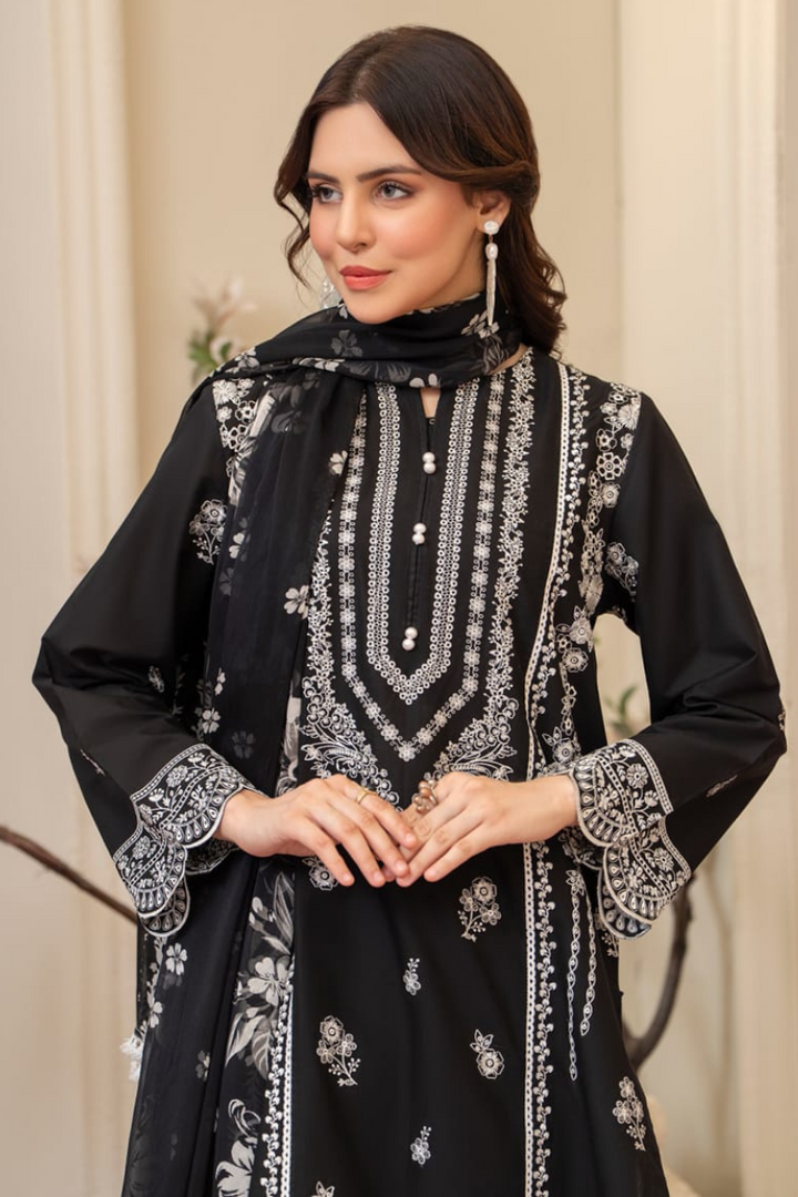 Our exquisite lawn Embroidered shirt is a perfect blend of elegance and sophistication. Paired with a beautifully printed dupatta, and bottom. this ensemble is ideal for formal occasions and special events.