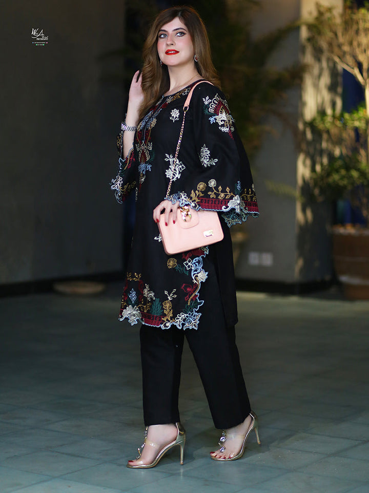 Description : Two Piece Women Winter suite embroidered Sequence Shirt & Trouser Suit for formal & casual occasions