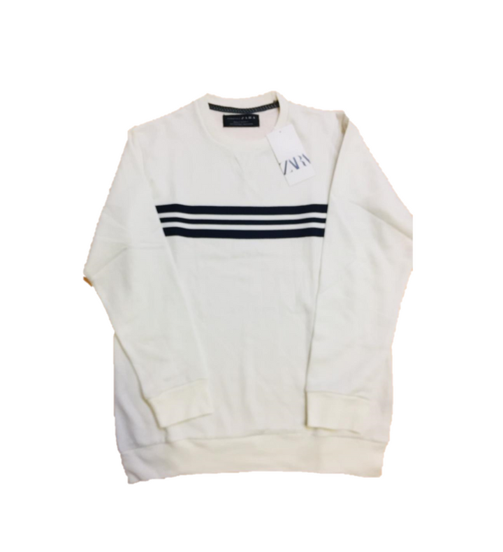 ZR Premium Cotton Terry Sweatshirt – White with Black Stripes