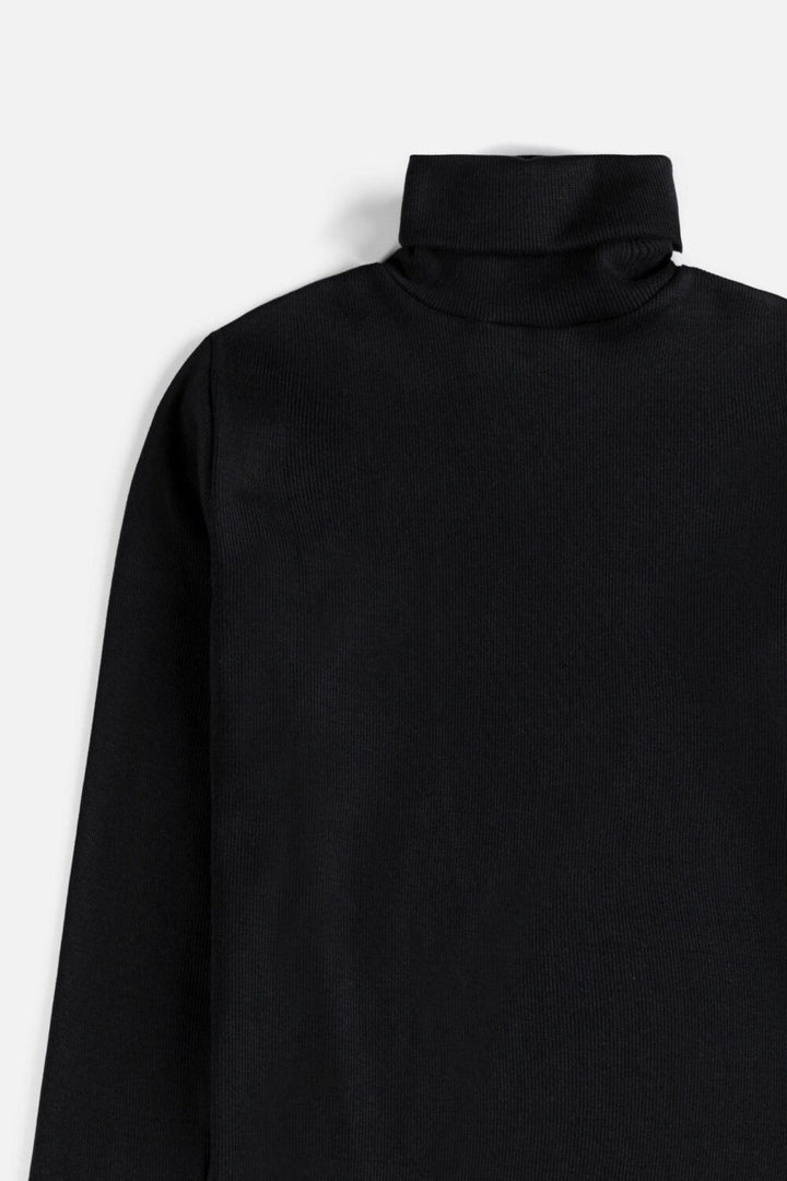 ZR Rib Cotton Turtle Neck Sweat – Black